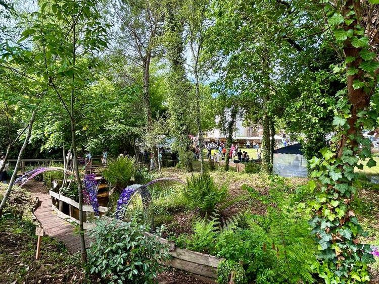Tout au long de la déambulation, le visiteur est invité à entrer dans un récit floral où l’enfance devient fil conducteur. Sous le mail de platanes, sur les murs de l’église romane, près du ruisseau ou de l’étang voisin, les installations se fondent dans le paysage.