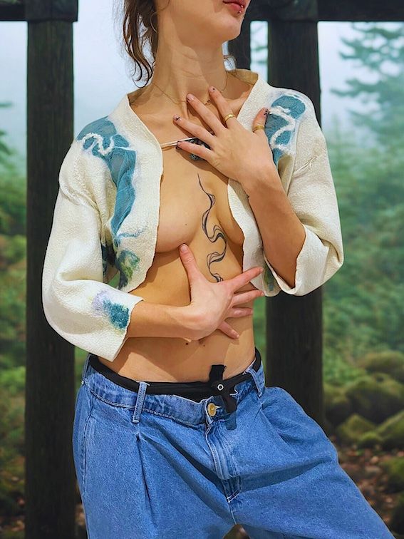 Pourquoi la laine feutrée ? Il s’agit d’une fibre vivante, écologique et bienfaisante. Naturelle, biodégradable, locale et durable, elle est aussi respirante, légère, thermorégulatrice, non allergisante et apaisante. Les fibres feutrées présentent une élasticité naturelle combinée avec l’infinie douceur du mérinos. La laine feutrée est une alternative saine et sensorielle aux matières synthétiques et aux prothèses en silicone.