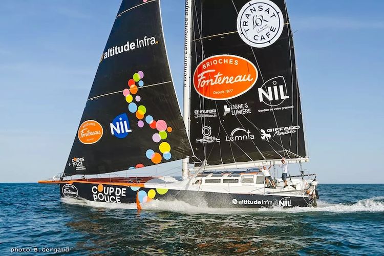 Jean-Baptiste Daramy participe donc à la Café l’Or, l’ancienne Transat Jacques Vabre, en binôme avec Manuel Cousin, sur un Imoca, monocoque de 18,28 m. Baptisé « Coup de Pouce », du nom d’une association qui accompagne des enfants en décrochage scolaire.