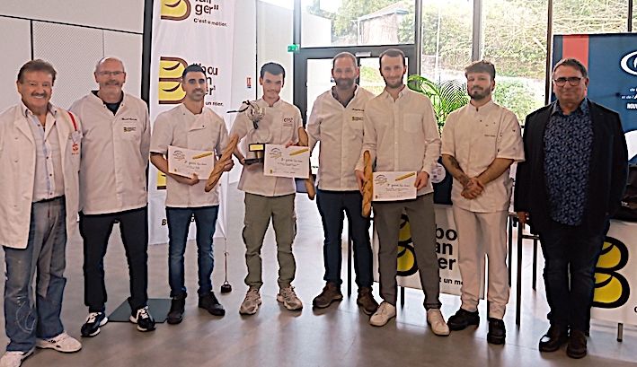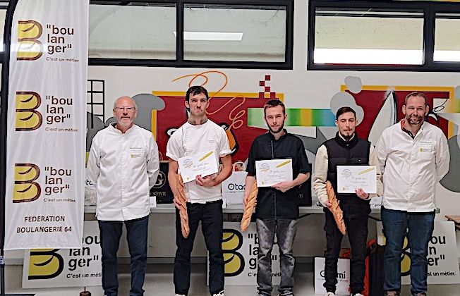 Les trois lauréats au Pays Basque : Kylian Masneuf, boulanger salarié Au Fournil de la Licorne à Bidart (1er prix) ; Eddy Gailing, artisan boulanger T'm le pain à Anglet (2ème prix) ; Matthéo Guérin, salarié de la Boulangerie Kleber à Biarritz (3ème prix).