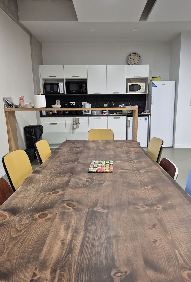 Mais c’est à l’intérieur que le bâtiment dévoile son véritable visage. Ici, pas de mobilier flambant neuf ni de décoration standardisée : tout a été pensé pour réutiliser, réemployer, prolonger. Les étagères, bureaux, tables de réunion ou abris à vélos racontent chacun une histoire de matière retrouvée, passée entre les mains d’acteurs locaux du réemploi et de la réutilisation, Aima, Patxa’ma, Resak et Les Ateliers du Singe.
