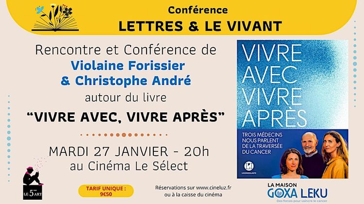 À l’occasion de la Journée mondiale contre le cancer, l’association à l’origine du festival et des cycles de conférences « Lettres & le Vivant », organise cette soirée qui réunira la Dr Violaine Forissier et le Dr Christophe André autour de leur ouvrage commun « Vivre avec, vivre après ».