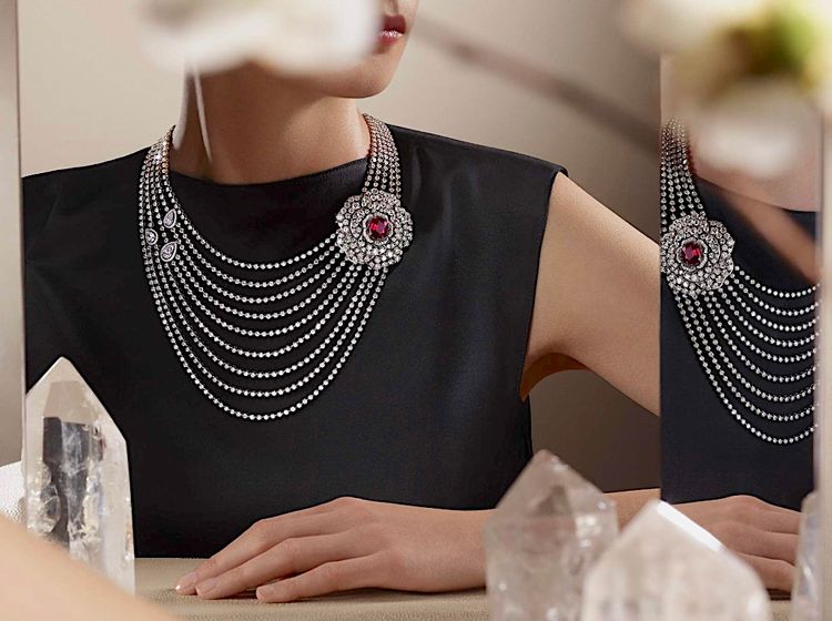 « Dans son appartement de la rue Cambon, sur les paravents et les lustres, le camélia orne également ses créations dès ses premières collections dans les années 1920. Plus qu’un simple accessoire, elle le détourne et l’interprète pour le faire fleurir inlassablement au détour d’une coiffure, d’une robe, d’un décolleté et même en tant que bijou. Aujourd’hui, Chanel interprète cette fleur signature dans toutes les matières et sous toutes ses formes, fidèle à l’esprit de Mademoiselle ».