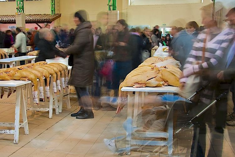 A partir de 10 heures, on peut profiter du marché aux carcasses et du marché au foie gras. Ces marchés au gras de Gimont sont organisés sur le principe de la vente directe du producteur au consommateur. Qualité de la production, élevage traditionnel en petits volumes, fraîcheur des produits et hygiène, sont les points forts de ces différents marchés. Le marché dit « aux carcasses », propose des produits issus d'oies et de canards entiers permettant de réaliser des confits, des magrets et des aiguillettes. Le marché dit « au gras », propose une vente de foie gras frais entier d'oie ou de canard. A noter qu’un service de découpe est proposé sur place pour faciliter le transport et la préparation de ces délicieux mets.