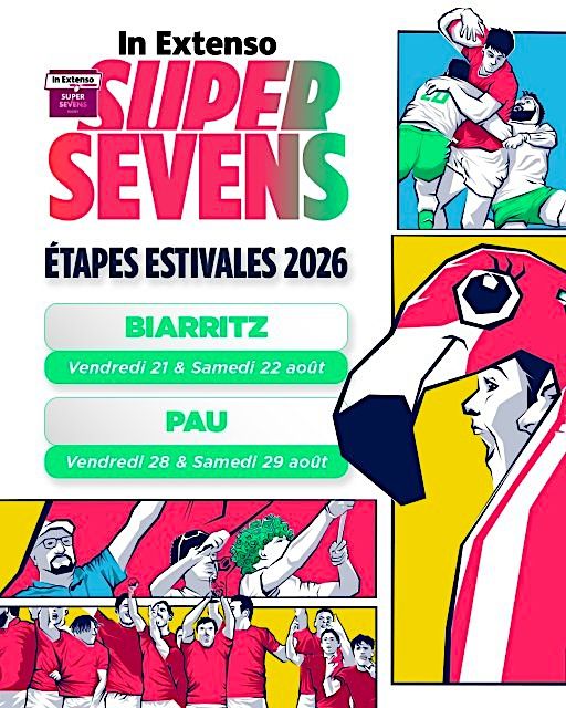 Supersevens de rugby à Biarritz et à Pau. – Elles seront les deux villes hôtes de l’édition 2026/2027. La première étape sera organisée à Aguiléra, le vendredi 21 et le samedi 22 août ; la seconde sera disputée au Hameau, le vendredi 28 et le samedi 29 août. Chaque étape comprendra une phase de poules le premier jour, suivie d’une night session, puis une seconde journée intégralement consacrée aux matches à élimination directe. La compétition féminine sera pleinement intégrée à chaque étape. La finale elle, aura lieu à Paris La Défense Arena le week-end du 6-7 février 2027.
