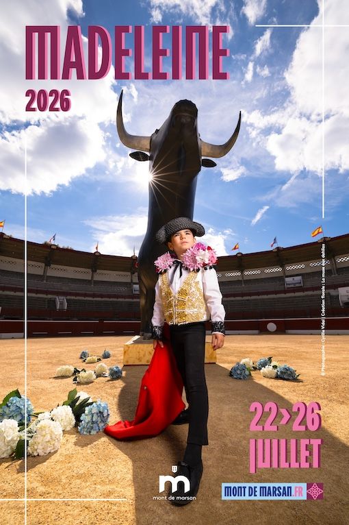 L’affiche de La Madeleine montoise. - Photographiée dans les arènes, elle valorise le char de toros, symbole de la cavalcade, accompagné d’une enfant participant également à ce temps fort, incarnant la transmission et le partage entre générations, avec une touche de féminité. Les hortensias apportent une note de douceur et de couleur, en écho à l’esprit festif et chaleureux de la Madeleine. Cette affiche a été réalisée par le photographe Cyrille Vidal et la fleuriste Sarah Lartigue. Rendez-vous du 22 au 26 juillet pour la feria.