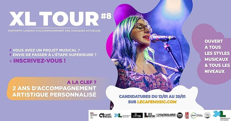 Inscriptions pour le XL Tour #8. - À partir du lundi 12 janvier à 9 heures, les artistes solos ou groupes des Landes peuvent candidater pour intégrer ce dispositif départemental d’accompagnement dédié aux musiques actuelles. Créé en 2011 à l’initiative du Conseil départemental, le XL Tour s’adresse aux musiciens amateurs et semi-professionnels souhaitant structurer et développer leur projet artistique sur le long terme. À la clé, un accompagnement personnalisé de deux ans, assuré par un collectif d’acteurs reconnus du territoire, allant des scènes de diffusion aux structures de formation, avec le soutien des institutions culturelles régionales et nationales. Après une première phase de présélection sur écoute, huit projets seront retenus pour un concert public de sélection, prévu le 27 février au CaféMusic de Mont-de-Marsan. À l’issue de cette soirée, quatre formations bénéficieront d’un suivi approfondi, mêlant conseils artistiques, techniques et professionnels. Pour s'inscrire, cliquez ici.