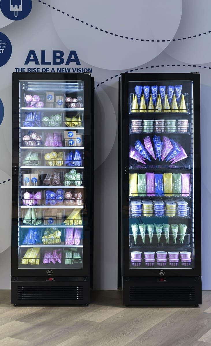 La première évolution saute aux yeux : Alba offre une visibilité accrue des produits. L’augmentation des surfaces vitrées et de la surface totale d’exposition permet de mettre encore davantage de produits en avant. Un atout décisif dans un secteur où l’achat de crème glacée dépend largement du visuel.