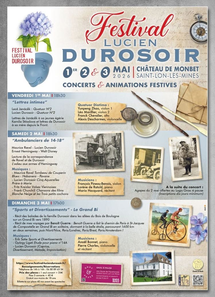 C’est dans ce contexte qu’est né le festival Lucien Durosoir, porté par la volonté de faire revivre cette musique et de l’inscrire dans un territoire. Installé notamment au Château de Monbet, il s’ancre dans un cadre patrimonial intimiste, propice à l’écoute et à l’émotion.