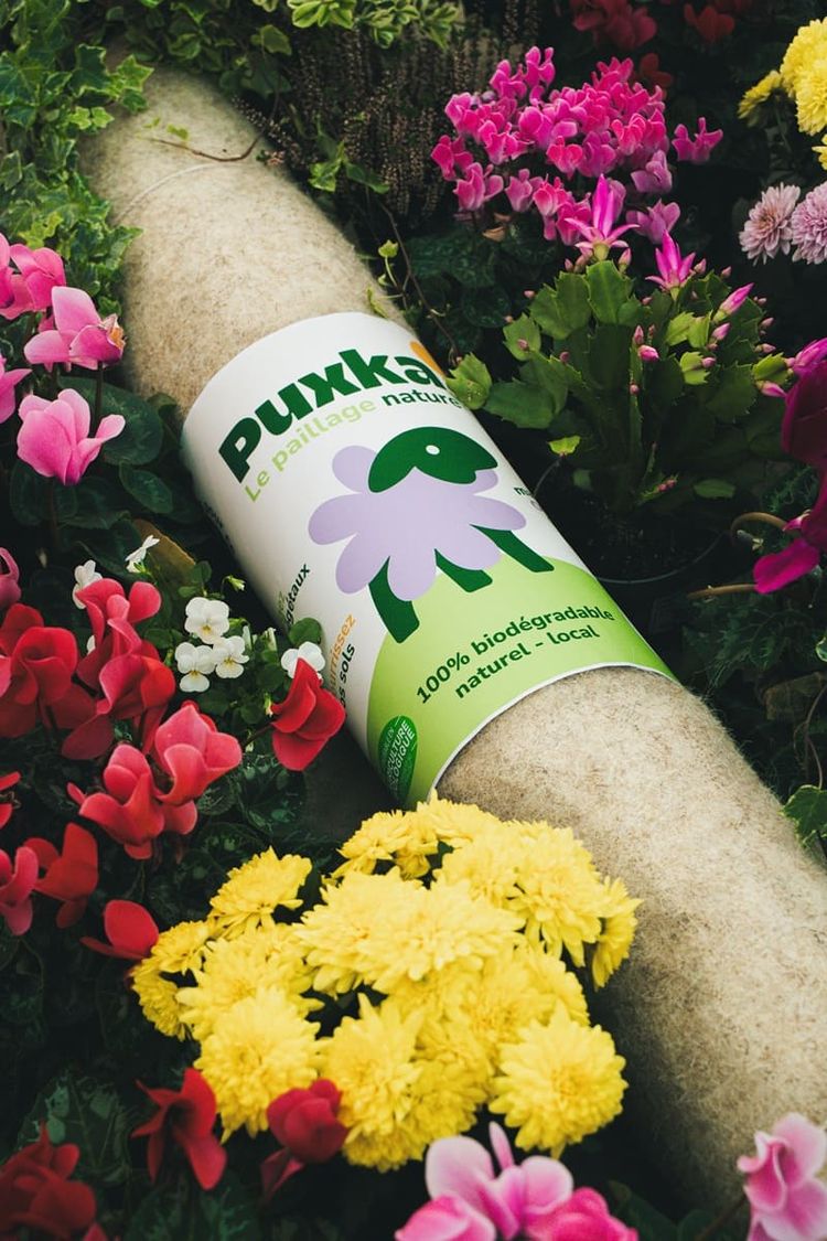 D’abord Puxka, un paillage 100 % laine destiné aux professionnels des espaces verts et de l’agriculture. Une alternative locale aux bâches plastiques, capable de retenir l’eau, nourrir les sols et réguler la température.