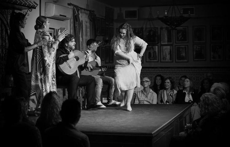 Les soirées prolongent cette immersion dans une ambiance plus festive. Les bodegas s’animent, les conversations et les saveurs andalouses viennent compléter l’expérience. Comme dans toute bonne fiesta, le flamenco déborde de la scène pour envahir l’espace et rapprocher les gens.