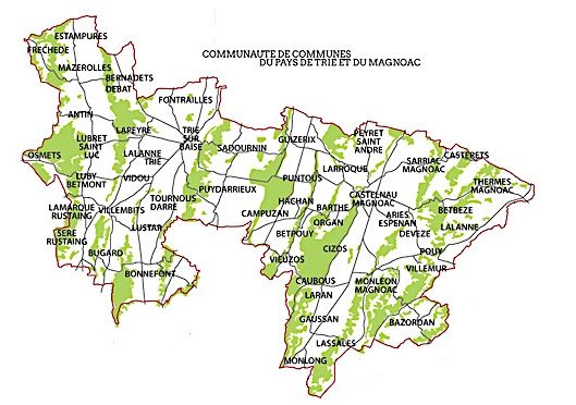 Le Communauté regroupe 50 communes autour de : Trie-sur-Baïse, Monléon Magnoac, Castelnau-Magnoac, Bonnefont, Puydarrieux, Guizerix…