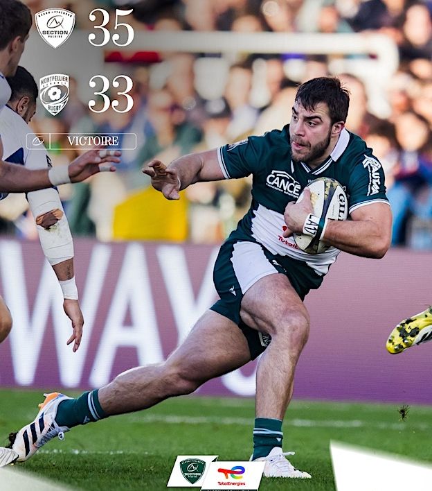 La Section Paloise a réussi à décrocher un succès précieux au Hameau face à une puissante équipe héraultaise qui n’a rien lâché jusqu’au bout. Le combat fut sévère et heureusement les Béarnais ont su prendre un peu d’avancer au score, après la pause, grâce à l’opportunisme de sa cavalerie. Pau termine donc la phase aller juste derrière Toulouse, avec un matelas de 8 points d’avance sur le 3e, Toulon.