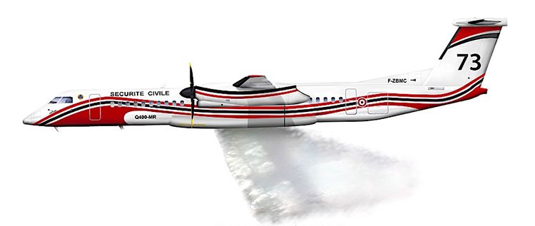 D’une longueur de 33 mètres pour une envergure de près de 29 mètres, le Dash est capable de voler à plus de 680 km/h avec une autonomie de 2.040 km. Outre les missions attaque sur feux, le Dash 8 peut volet pour du guet aérien, de la pose de lignes de produits retardant et du transport de passager avec ou sans fret (64 passagers, 19 passagers avec 4 tonnes de fret ou 9,5 tonnes de fret sans passagers).