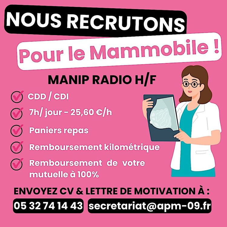 L’accès au Mammobile est gratuit et ne nécessite qu’une simple prise de rendez-vous. Il est d’ores-et-déjà possible de réserver pour les prochaines journées, en téléphonant au 05.32.48.00.05.