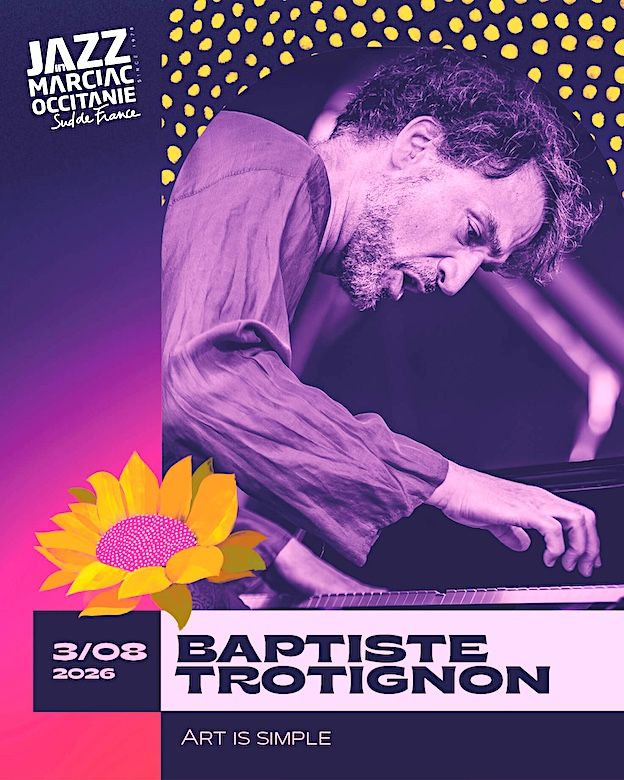 Le pianiste Baptiste Trotignon est annoncé en En première partie ce 3 août. Il viendra présenter son projet « Art is simple ». Rien d’étonnant à retrouver ici, le célèbre pianiste de jazz, qui a enregistré en duo, avec la voix habitée du chanteur de Feu! Chatterton, Arthur Teboul, un album de reprises issues du répertoire de la chanson française : « Piano Voix ». Après plusieurs albums de reprises, le pianiste français a éprouvé le désir d’écrire des compositions et s’est amusé à se fixer une règle : 1h maximum de temps pour composer chaque titre… ça c’est un challenge ! À Marciac, il dévoilera le résultat, en trio avec Jérôme Regard à la basse et Raphaël Pannier à la batterie.