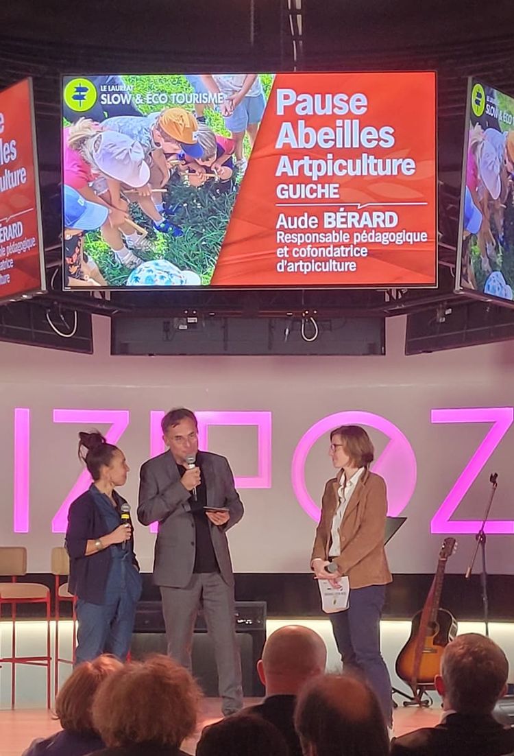 Le premier prix de la catégorie « Slow & écotourisme » distingue Pause Abeilles, à Guiche. Ce parcours poétique et sensoriel en accès libre invite à découvrir la biodiversité autrement. Sentier pieds nus, installations pédagogiques et rencontres avec les pollinisateurs composent une expérience pensée pour sensibiliser tous les publics à la fragilité du vivant.
